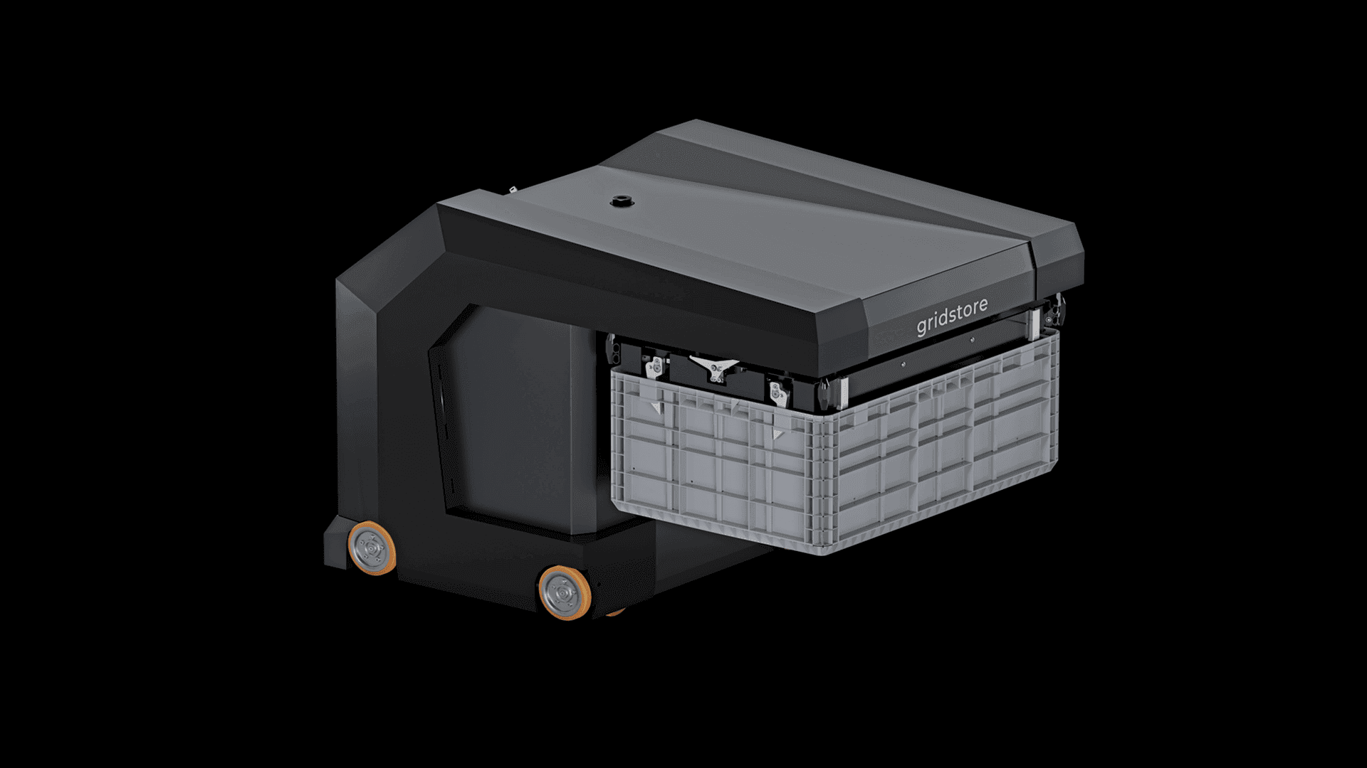 LEO locative automatisiert den Transport von Behältern, Kartonagen und Tablaren ohne IT-Anbindung. Mit seiner Lastaufnahme und Übergabestationen ermöglicht es eine schnelle und effiziente Handhabung von Behältern während des Transports.